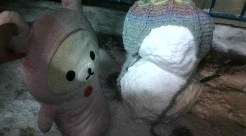 ベランダで雪だるまを作った!!