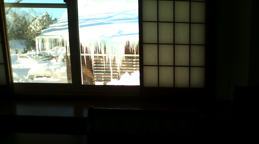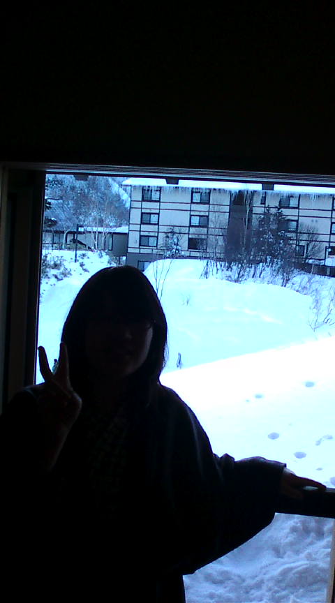 部屋に着くと、部屋の窓のすぐ近くは屋根があり、そこに雪が積もっておりました。