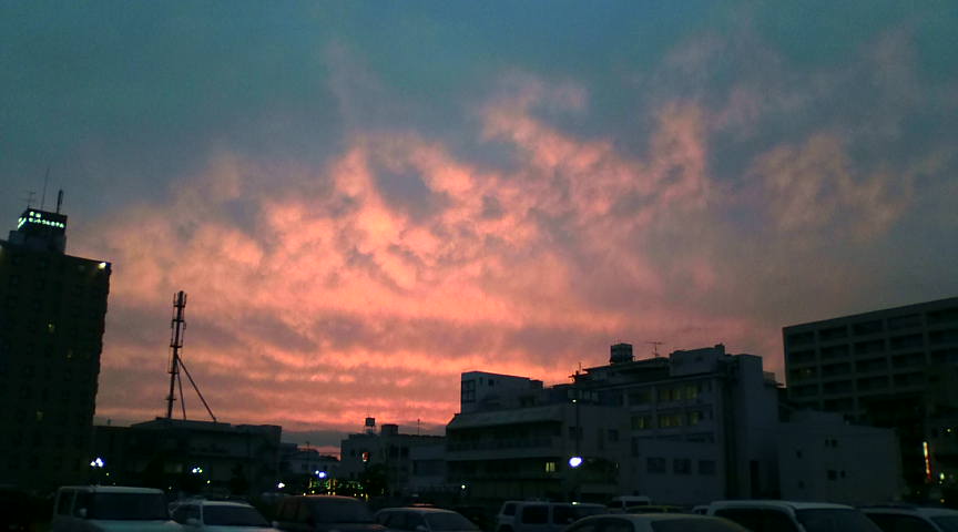 写メは、夕焼け空。なんか、きれいだったから下宿先の駅付近からパシャリ。