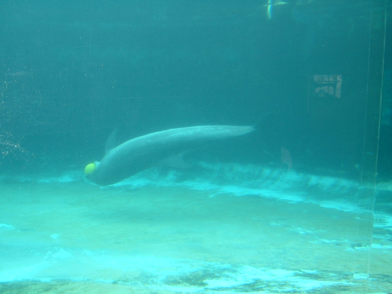 この写真はイルカがちょうどボールを取ったところ