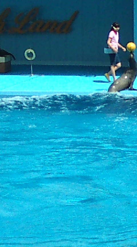 でも、イルカは面白かったです。5頭くらいにトレーナーさんがフラフープを回すように指示したんですね、手でくるくるしながら。