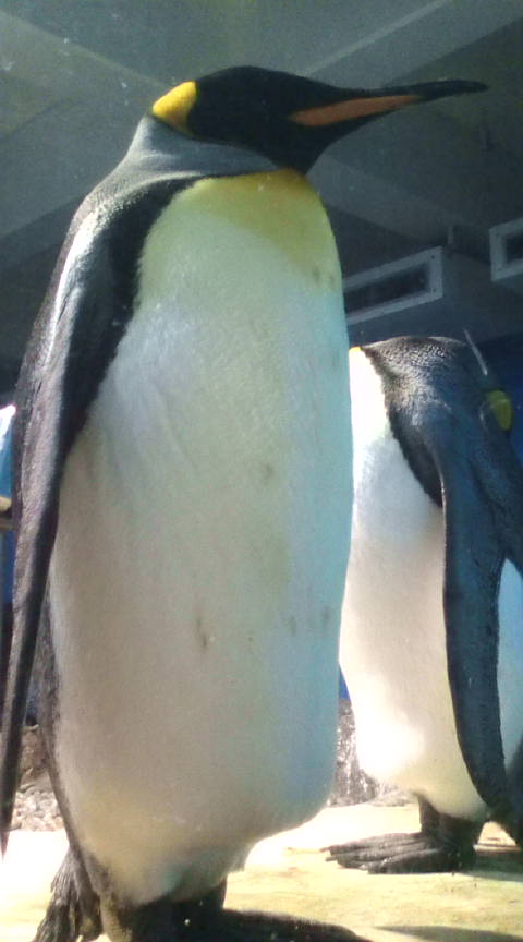 左の写真は餌やり。右はペンギン。本当にペンギンとの距離は近かったのです!