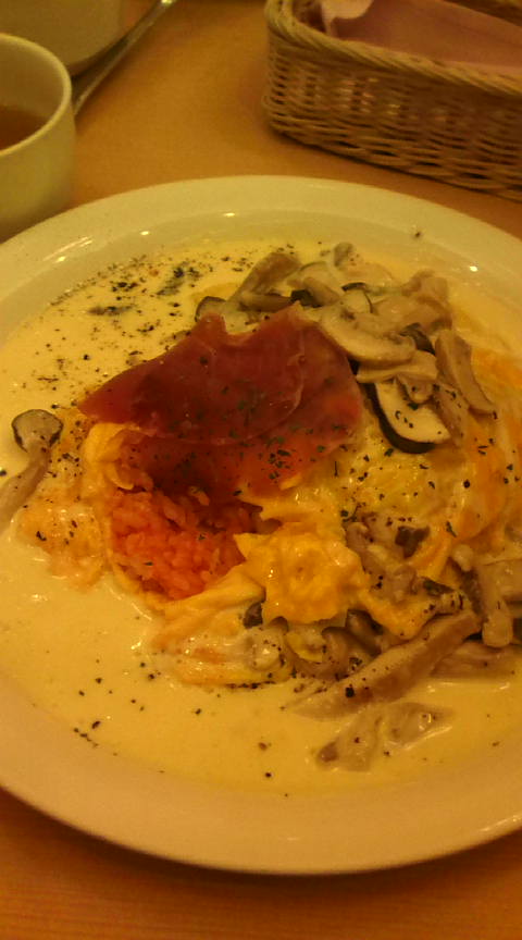 私が頼んだのは、クリームチーズときのこなんとかという、オムライスです。