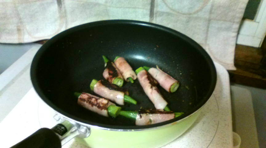 以下の写真は一人暮らしをしていたときに作ったオクラのベーコン巻。ちなみに、みあは昔オクラが口に合わなかった。しかし、ベーコン巻きをたべることによってオクラが普通に食べれるようになった。今では、サラダとかにふつうに入ってても食べれるし、むしろ好きになったw
