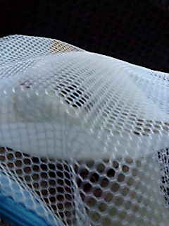 説明すると、このネットは洗たくとかでよく使うやつなんですが、動物病院に連れてくまで、箱の形みたいなのに入れると、動物病院に着いた時怖くなってでなくなる可能性があるんですね。